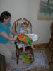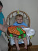 Micah eating his first cupcake on on his Birthday